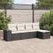 Salon de jardin 5 pcs avec coussins noir résine tresséeCet ensemble de canapés de jardin est le complément parfait de votre arrière-cour, terrasse ou patio, offrant un espace confortable et accueillant pour discuter avec la famille et les amis ou simplement se détendre et profiter de l'extérieur. Matériau durable : la résine tressée, également connue sous le nom de poly rotin, est un matériau synthétique solide et nécessitant peu d'entretien qui ressemble au rotin naturel. Elle est légère, facile à nettoyer et couramment utilisée pour les meubles d'extérieur en raison de sa durabilité et de ses propriétés de résistance aux intempéries.Fonction de rangement avec sac résistant à l'eau : le mobilier de jardin dispose d'un espace de rangement sous l'assise, complété par un sac résistant à l'eau pour ranger coussins, jouets et autres objets. Le sac intérieur peut être solidement fixé au mobilier d'extérieur grâce à des attaches auto-agrippantes pour plus de stabilité.Pouf polyvalent : le tabouret est polyvalent, servant de repose-pieds confortable lorsque vous vous prélassez sur le canapé ou de siège supplémentaire dans votre jardin.Housse amovible et lavable : ces coussins de siège sont dotés de housses amovibles pour un lavage et un entretien faciles.Conception modulaire : cet ensemble de meubles d'extérieur a une conception modulaire, ce qui le rend complètement flexible et facile à déplacer, afin que vous puissiez créer un agencement de meubles d'extérieur personnalisé. Bon à savoir :Pour que vos meubles d'extérieur restent beaux, nous vous recommandons de les protéger avec une housse imperméable.