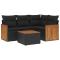 Salon de jardin 5 pcs avec coussins noir résine tresséeCet ensemble de canapés de jardin est le complément parfait de votre arrière-cour, terrasse ou patio, offrant un espace confortable et accueillant pour discuter avec la famille et les amis ou simplement se détendre et profiter de l'extérieur. Matériau durable : la résine tressée, également connue sous le nom de poly rotin, est un matériau synthétique solide et nécessitant peu d'entretien qui ressemble au rotin naturel. Il est léger, facile à nettoyer et couramment utilisé pour les meubles d'extérieur en raison de sa durabilité et de ses propriétés de résistance aux intempéries.Fonction de rangement avec sac résistant à l'eau : le mobilier de jardin dispose d'un espace de rangement sous l'assise, complété par un sac résistant à l'eau pour ranger coussins, jouets et autres objets. Le sac intérieur peut être solidement fixé au mobilier d'extérieur grâce à des attaches auto-agrippantes pour plus de stabilité.Dessus stable et facile à nettoyer : cette table de jardin a un dessus en bois d'acacia robuste, durable et facile à nettoyer avec un chiffon humide.Housse amovible et lavable : ces coussins de siège sont dotés de housses amovibles pour un lavage et un entretien faciles.Conception modulaire : cet ensemble de meubles d'extérieur a une conception modulaire, ce qui le rend complètement flexible et facile à déplacer, afin que vous puissiez créer un agencement de meubles d'extérieur personnalisé. Bon à savoir :Pour que vos meubles d'extérieur restent beaux, nous vous recommandons de les protéger avec une housse imperméable.