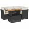 Salon de jardin 5 pcs avec coussins noir résine tresséeCet ensemble de canapés de jardin est le complément parfait de votre arrière-cour, terrasse ou patio, offrant un espace confortable et accueillant pour discuter avec la famille et les amis ou simplement se détendre et profiter de l'extérieur. Matériau durable : la résine tressée, également connue sous le nom de poly rotin, est un matériau synthétique solide et nécessitant peu d'entretien qui ressemble au rotin naturel. Elle est légère, facile à nettoyer et couramment utilisée pour les meubles d'extérieur en raison de sa durabilité et de ses propriétés de résistance aux intempéries.Fonction de rangement avec sac résistant à l'eau : le mobilier de jardin dispose d'un espace de rangement sous l'assise, complété par un sac résistant à l'eau pour ranger coussins, jouets et autres objets. Le sac intérieur peut être solidement fixé au mobilier d'extérieur grâce à des attaches auto-agrippantes pour plus de stabilité.Dessus de table réglable : le dessus de table peut être soulevé pour rendre la table plus haute, ce qui transforme la table d'extérieur d'une table basse à une table de salle à manger. Elle est parfaite pour recevoir des invités ou prendre des repas à l'extérieur.Housse amovible et lavable : ces coussins de siège sont dotés de housses amovibles pour un lavage et un entretien faciles.Conception modulaire : cet ensemble de meubles d'extérieur a une conception modulaire, ce qui le rend complètement flexible et facile à déplacer, afin que vous puissiez créer un agencement de meubles d'extérieur personnalisé. Bon à savoir :Pour que vos meubles d'extérieur restent beaux, nous vous recommandons de les protéger avec une housse imperméable.