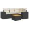 Salon de jardin 5 pcs avec coussins noir résine tresséeCet ensemble de canapés de jardin est le complément parfait de votre arrière-cour, terrasse ou patio, offrant un espace confortable et accueillant pour discuter avec la famille et les amis ou simplement se détendre et profiter de l'extérieur. Matériau durable : la résine tressée, également connue sous le nom de poly rotin, est un matériau synthétique solide et nécessitant peu d'entretien qui ressemble au rotin naturel. Il est léger, facile à nettoyer et couramment utilisé pour les meubles d'extérieur en raison de sa durabilité et de ses propriétés de résistance aux intempéries.Dessus stable et facile à nettoyer : cette table de jardin a un dessus en bois d'acacia robuste, durable et facile à nettoyer avec un chiffon humide. Expérience d'assise confortable : ce mobilier d'extérieur, doté de coussins épais, offre une expérience d'assise confortable.Housse amovible et lavable : ces coussins de siège sont dotés de housses amovibles pour un lavage et un entretien faciles.Conception modulaire : cet ensemble de meubles d'extérieur a une conception modulaire, ce qui le rend complètement flexible et facile à déplacer, afin que vous puissiez créer un agencement de meubles d'extérieur personnalisé. Bon à savoir :Pour que vos meubles d'extérieur restent beaux, nous vous recommandons de les protéger avec une housse imperméable.