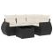 Salon de jardin 5 pcs avec coussins noir résine tresséeCet ensemble de canapés de jardin est le complément parfait de votre arrière-cour, terrasse ou patio, offrant un espace confortable et accueillant pour discuter avec la famille et les amis ou simplement se détendre et profiter de l'extérieur. Matériau durable : la résine tressée, également connue sous le nom de poly rotin, est un matériau synthétique solide et nécessitant peu d'entretien qui ressemble au rotin naturel. Il est léger, facile à nettoyer et couramment utilisé pour les meubles d'extérieur en raison de sa durabilité et de ses propriétés de résistance aux intempéries.Dessus en verre : le dessus de la table d'extérieur est fabriqué en verre trempé solide et durable, ce qui le rend facile à nettoyer avec un chiffon humide et ajoute une touche d'élégance à votre espace extérieur. Expérience d'assise confortable : ce mobilier d'extérieur, doté de coussins épais, offre une expérience d'assise confortable.Housse amovible et lavable : ces coussins de siège sont dotés de housses amovibles pour un lavage et un entretien faciles.Conception modulaire : cet ensemble de meubles d'extérieur a une conception modulaire, ce qui le rend complètement flexible et facile à déplacer, afin que vous puissiez créer un agencement de meubles d'extérieur personnalisé. Bon à savoir :Pour que vos meubles d'extérieur restent beaux, nous vous recommandons de les protéger avec une housse imperméable.