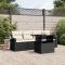 Salon de jardin 5 pcs avec coussins noir résine tresséeCet ensemble de canapés de jardin est le complément parfait de votre arrière-cour, terrasse ou patio, offrant un espace confortable et accueillant pour discuter avec la famille et les amis ou simplement se détendre et profiter de l'extérieur. Matériau durable : la résine tressée, également connue sous le nom de poly rotin, est un matériau synthétique solide et nécessitant peu d'entretien qui ressemble au rotin naturel. Il est léger, facile à nettoyer et couramment utilisé pour les meubles d'extérieur en raison de sa durabilité et de ses propriétés de résistance aux intempéries.Dessus de table réglable : le dessus de table peut être soulevé pour rendre la table plus haute, ce qui transforme la table d'extérieur d'une table basse à une table de salle à manger. Elle est parfaite pour recevoir des invités ou prendre des repas à l'extérieur.Table d'appoint pratique : ce mobilier d'extérieur comprend des tables d'appoint pliables avec un ressort à gaz sur les accoudoirs, offrant des endroits pratiques pour garder vos essentiels à portée de main. Expérience d'assise confortable : ce mobilier d'extérieur, doté de coussins épais, offre une expérience d'assise confortable.Conception modulaire : cet ensemble de meubles d'extérieur a une conception modulaire, ce qui le rend complètement flexible et facile à déplacer, afin que vous puissiez créer un agencement de meubles d'extérieur personnalisé. Bon à savoir :Pour que vos meubles d'extérieur restent beaux, nous vous recommandons de les protéger avec une housse imperméable.