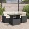 Salon de jardin 5 pcs avec coussins noir résine tresséeCet ensemble de canapés de jardin est le complément parfait de votre arrière-cour, terrasse ou patio, offrant un espace confortable et accueillant pour discuter avec la famille et les amis ou simplement se détendre et profiter de l'extérieur. Matériau durable : la résine tressée, également connue sous le nom de poly rotin, est un matériau synthétique solide et nécessitant peu d'entretien qui ressemble au rotin naturel. Elle est légère, facile à nettoyer et couramment utilisée pour les meubles d'extérieur en raison de sa durabilité et de ses propriétés de résistance aux intempéries.Fonction de rangement avec sac résistant à l'eau : chaque siège de jardin dispose d'un espace de rangement sous l'assise, complété par un sac résistant à l'eau pour ranger les coussins, les jouets et d'autres objets. Le sac intérieur est doté d'un couvercle et peut être solidement fixé au siège à l'aide de bandes auto-agrippantes pour plus de stabilité.Dessus de table réglable : le dessus de table peut être soulevé pour rendre la table plus haute, ce qui transforme la table d'extérieur d'une table basse à une table de salle à manger. Elle est parfaite pour recevoir des invités ou prendre des repas à l'extérieur.Housse amovible et lavable : ces coussins de siège sont dotés de housses amovibles pour un lavage et un entretien faciles.Cadre robuste et stable : le cadre en acier enduit de poudre est solide, stable, durable et résistant à la corrosion et aux intempéries, ce qui garantit des performances durables. Bon à savoir :Pour que vos meubles d'extérieur restent beaux, nous vous recommandons de les protéger avec une housse imperméable.