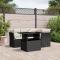 Salon de jardin 5 pcs avec coussins noir résine tresséeCet ensemble de canapés de jardin est le complément parfait de votre arrière-cour, terrasse ou patio, offrant un espace confortable et accueillant pour discuter avec la famille et les amis ou simplement se détendre et profiter de l'extérieur. Matériau durable : la résine tressée, également connue sous le nom de poly rotin, est un matériau synthétique solide et nécessitant peu d'entretien qui ressemble au rotin naturel. Il est léger, facile à nettoyer et couramment utilisé pour les meubles d'extérieur en raison de sa durabilité et de ses propriétés de résistance aux intempéries.Dessus de table réglable : le dessus de table peut être soulevé pour rendre la table plus haute, ce qui transforme la table d'extérieur d'une table basse à une table de salle à manger. Elle est parfaite pour recevoir des invités ou prendre des repas à l'extérieur.Expérience d'assise confortable : ce mobilier d'extérieur, doté de coussins épais, offre une expérience d'assise confortable.Housse amovible et lavable : ces coussins de siège sont dotés de housses amovibles pour un lavage et un entretien faciles.Conception modulaire : cet ensemble de meubles d'extérieur a une conception modulaire, ce qui le rend complètement flexible et facile à déplacer, afin que vous puissiez créer un agencement de meubles d'extérieur personnalisé. Bon à savoir :Pour que vos meubles d'extérieur restent beaux, nous vous recommandons de les protéger avec une housse imperméable.