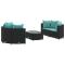 Salon de jardin 5 pcs avec coussins noir résine tresséeCet ensemble de canapés de jardin est le complément parfait de votre arrière-cour, terrasse ou patio, offrant un espace confortable et accueillant pour discuter avec la famille et les amis ou simplement se détendre et profiter de l'extérieur. Matériau durable : la résine tressée, également connue sous le nom de poly rotin, est un matériau synthétique solide et nécessitant peu d'entretien qui ressemble au rotin naturel. Elle est légère, facile à nettoyer et couramment utilisée pour les meubles d'extérieur en raison de sa durabilité et de ses propriétés de résistance aux intempéries.Cadre robuste et stable : le cadre en acier enduit de poudre est solide, stable, durable et résistant à la corrosion et aux intempéries, ce qui garantit des performances durables.Conception modulaire : cet ensemble de meubles d'extérieur a une conception modulaire, ce qui le rend complètement flexible et facile à déplacer, afin que vous puissiez créer un agencement de meubles d'extérieur personnalisé.Expérience d'assise confortable : ce mobilier d'extérieur, doté de coussins épais, offre une expérience d'assise confortable.Dessus en verre : le dessus de la table d'extérieur est fabriqué en verre trempé solide et durable, ce qui le rend facile à nettoyer avec un chiffon humide et ajoute une touche d'élégance à votre espace extérieur. Bon à savoir :Pour que vos meubles d'extérieur restent beaux, nous vous recommandons de les protéger avec une housse imperméable. Maximum 110 kg par siège.