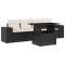 Salon de jardin 5 pcs avec coussins noir résine tresséeCet ensemble de canapés de jardin est le complément parfait de votre arrière-cour, terrasse ou patio, offrant un espace confortable et accueillant pour discuter avec la famille et les amis ou simplement se détendre et profiter de l'extérieur. Matériau durable : la résine tressée, également connue sous le nom de poly rotin, est un matériau synthétique solide et nécessitant peu d'entretien qui ressemble au rotin naturel. Il est léger, facile à nettoyer et couramment utilisé pour les meubles d'extérieur en raison de sa durabilité et de ses propriétés de résistance aux intempéries.Dessus de table réglable : le dessus de table peut être soulevé pour rendre la table plus haute, ce qui transforme la table d'extérieur d'une table basse à une table de salle à manger. Elle est parfaite pour recevoir des invités ou prendre des repas à l'extérieur.Expérience d'assise confortable : ce mobilier d'extérieur, doté de coussins épais, offre une expérience d'assise confortable.Housse amovible et lavable : ces coussins de siège sont dotés de housses amovibles pour un lavage et un entretien faciles.Conception modulaire : cet ensemble de meubles d'extérieur a une conception modulaire, ce qui le rend complètement flexible et facile à déplacer, afin que vous puissiez créer un agencement de meubles d'extérieur personnalisé. Bon à savoir :Pour que vos meubles d'extérieur restent beaux, nous vous recommandons de les protéger avec une housse imperméable.