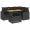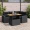 Salon de jardin 5 pcs avec coussins noir résine tresséeCet ensemble de canapés de jardin est le complément parfait de votre arrière-cour, terrasse ou patio, offrant un espace confortable et accueillant pour discuter avec la famille et les amis ou simplement se détendre et profiter de l'extérieur. Matériau durable : la résine tressée, également connue sous le nom de poly rotin, est un matériau synthétique solide et nécessitant peu d'entretien qui ressemble au rotin naturel. Elle est légère, facile à nettoyer et couramment utilisée pour les meubles d'extérieur en raison de sa durabilité et de ses propriétés de résistance aux intempéries.Fonction de rangement avec sac résistant à l'eau : le mobilier de jardin dispose d'un espace de rangement sous l'assise, complété par un sac résistant à l'eau pour ranger coussins, jouets et autres objets. Le sac intérieur peut être solidement fixé au mobilier d'extérieur grâce à des attaches auto-agrippantes pour plus de stabilité.Dessus de table réglable : le dessus de table peut être soulevé pour rendre la table plus haute, ce qui transforme la table d'extérieur d'une table basse à une table de salle à manger. Elle est parfaite pour recevoir des invités ou prendre des repas à l'extérieur.Housse amovible et lavable : ces coussins de siège sont dotés de housses amovibles pour un lavage et un entretien faciles.Conception modulaire : cet ensemble de meubles d'extérieur a une conception modulaire, ce qui le rend complètement flexible et facile à déplacer, afin que vous puissiez créer un agencement de meubles d'extérieur personnalisé. Bon à savoir :Pour que vos meubles d'extérieur restent beaux, nous vous recommandons de les protéger avec une housse imperméable.