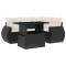 Salon de jardin 5 pcs avec coussins noir résine tresséeCet ensemble de canapés de jardin est le complément parfait de votre arrière-cour, terrasse ou patio, offrant un espace confortable et accueillant pour discuter avec la famille et les amis ou simplement se détendre et profiter de l'extérieur. Matériau durable : la résine tressée, également connue sous le nom de poly rotin, est un matériau synthétique solide et nécessitant peu d'entretien qui ressemble au rotin naturel. Il est léger, facile à nettoyer et couramment utilisé pour les meubles d'extérieur en raison de sa durabilité et de ses propriétés de résistance aux intempéries.Dessus de table réglable : le dessus de table peut être soulevé pour rendre la table plus haute, ce qui transforme la table d'extérieur d'une table basse à une table de salle à manger. Elle est parfaite pour recevoir des invités ou prendre des repas à l'extérieur.Expérience d'assise confortable : ce mobilier d'extérieur, doté de coussins épais, offre une expérience d'assise confortable.Housse amovible et lavable : ces coussins de siège sont dotés de housses amovibles pour un lavage et un entretien faciles.Conception modulaire : cet ensemble de meubles d'extérieur a une conception modulaire, ce qui le rend complètement flexible et facile à déplacer, afin que vous puissiez créer un agencement de meubles d'extérieur personnalisé. Bon à savoir :Pour que vos meubles d'extérieur restent beaux, nous vous recommandons de les protéger avec une housse imperméable.