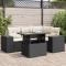 Salon de jardin 5 pcs avec coussins noir résine tresséeCet ensemble de canapés de jardin est le complément parfait de votre arrière-cour, terrasse ou patio, offrant un espace confortable et accueillant pour discuter avec la famille et les amis ou simplement se détendre et profiter de l'extérieur. Matériau durable : la résine tressée, également connue sous le nom de poly rotin, est un matériau synthétique solide et nécessitant peu d'entretien qui ressemble au rotin naturel. Elle est légère, facile à nettoyer et couramment utilisée pour les meubles d'extérieur en raison de sa durabilité et de ses propriétés de résistance aux intempéries. Fonction de rangement avec sac résistant à l'eau : le mobilier de jardin dispose d'un espace de rangement sous l'assise, complété par un sac résistant à l'eau pour ranger coussins, jouets et autres objets. Le sac intérieur peut être solidement fixé au mobilier d'extérieur grâce à des attaches auto-agrippantes pour plus de stabilité. Dessus de table réglable : le dessus de table peut être soulevé pour rendre la table plus haute, ce qui transforme la table d'extérieur d'une table basse à une table de salle à manger. Elle est parfaite pour recevoir des invités ou prendre des repas à l'extérieur. Housse amovible et lavable : ces coussins de siège sont dotés de housses amovibles pour un lavage et un entretien faciles. Conception modulaire : cet ensemble de meubles d'extérieur a une conception modulaire, ce qui le rend complètement flexible et facile à déplacer, afin que vous puissiez créer un agencement de meubles d'extérieur personnalisé. Bon à savoir : Pour que vos meubles d'extérieur restent beaux, nous vous recommandons de les protéger avec une housse imperméable.