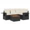 Salon de jardin 5 pcs avec coussins noir résine tresséeCet ensemble de canapés de jardin est le complément parfait de votre arrière-cour, terrasse ou patio, offrant un espace confortable et accueillant pour discuter avec la famille et les amis ou simplement se détendre et profiter de l'extérieur. Matériau durable : la résine tressée, également connue sous le nom de poly rotin, est un matériau synthétique solide et nécessitant peu d'entretien qui ressemble au rotin naturel. Il est léger, facile à nettoyer et couramment utilisé pour les meubles d'extérieur en raison de sa durabilité et de ses propriétés de résistance aux intempéries. Table d'appoint pratique : ce mobilier d'extérieur comprend une table d'appoint pliable avec un ressort à gaz sur les accoudoirs, offrant un endroit pratique pour garder vos essentiels à portée de main. Dessus stable et facile à nettoyer : cette table de jardin a un dessus en bois d'acacia robuste, durable et facile à nettoyer avec un chiffon humide. Housse amovible et lavable : ces coussins de siège sont dotés de housses amovibles pour un lavage et un entretien faciles. Conception modulaire : cet ensemble de meubles d'extérieur a une conception modulaire, ce qui le rend complètement flexible et facile à déplacer, afin que vous puissiez créer un agencement de meubles d'extérieur personnalisé. Bon à savoir : Pour que vos meubles d'extérieur restent beaux, nous vous recommandons de les protéger avec une housse imperméable. ,