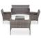 Salon de jardin 5 pcs avec coussins résine tressée grisCet ensemble de canapés et table de jardin en rotin sera un excellent supplément à votre espace de vie extérieur. Il ajoutera une touche d'élégance à votre patio, balcon ou jardin avec son design discret mais élégant. Fabriqué en résine tressée résistante aux intempéries et imperméable, l'ensemble est facile à nettoyer, résistant à l'usure et adapté à un usage quotidien. Le cadre en acier enduit de poudre rend l'ensemble très robuste et durable. Grâce à sa construction légère, il est facile à déplacer. Cet ensemble est livré avec des coussins d'assise bien rembourrés très confortables. Les housses de coussin sont amovibles et lavables. De plus, cet ensemble est facile à assembler. Remarque : nous vous recommandons de couvrir l'ensemble pendant la pluie, la neige et le gel.