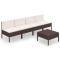 Salon de jardin 5 pcs avec coussins résine tressée marronCréez un espace de détente attrayant et relaxant dont vous avez toujours rêvé avec ce salon de jardin. Vous pouvez profiter d'un après-midi ensoleillé ou d'une soirée d'été relaxante avec votre famille et vos amis grâce à cet ensemble de meubles de jardin ! Avec de la résine tressée résistante aux intempéries, l'ensemble de meubles d'extérieur est facile à nettoyer et à entretenir. Le cadre en acier enduit de poudre l'ensemble de salon de patio stable et solide. Équipé de coussins épais et moelleux, ce salon de jardin offrira un confort d'assise ultime. Les housses en polyester, faciles à nettoyer, peuvent être retirées et lavées. De plus, grâce à leur conception légère et modulaire, vous pouvez déplacer cet ensemble dans votre maison avec une grande facilité. Remarque : afin de prolonger la durée de vie des meubles d'extérieur, nous vous recommandons de les protéger avec une housse imperméable.