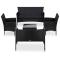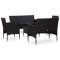 Salon de jardin 5 pcs avec coussins résine tressée noirCet ensemble de canapés et table de jardin en rotin sera un excellent supplément à votre espace de vie extérieur. Il ajoutera une touche d'élégance à votre patio, balcon ou jardin avec son design discret mais élégant. Fabriqué en résine tressée résistante aux intempéries et imperméable, l'ensemble est facile à nettoyer, résistant à l'usure et adapté à un usage quotidien. Le cadre en acier enduit de poudre rend l'ensemble très robuste et durable. Grâce à sa construction légère, il est facile à déplacer. Cet ensemble est livré avec des coussins d'assise bien rembourrés très confortables. Les housses de coussin sont amovibles et lavables. De plus, cet ensemble est facile à assembler. Remarque : nous vous recommandons de couvrir l'ensemble pendant la pluie, la neige et le gel.