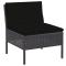 Salon de jardin 5 pcs avec coussins résine tressée noirCréez un espace de détente captivant et relaxant dont vous avez toujours rêvé avec notre salon de jardin. Vous pouvez profiter d'un après-midi ou d'une soirée d'été ensoleillée et relaxante avec votre famille et vos amis grâce à cet ensemble de salon modulaire ! L'ensemble est livré avec 5 pièces afin que vous puissiez choisir différentes dispositions et combinaisons selon vos préférences. Construit à partir de résine tressée durable sur un cadre en acier enduit de poudre, cet ensemble est durable, robuste et résistant aux intempéries. Grâce à la résine tressée toutes saisons, le salon de jardin est facile à nettoyer, résistant à l'usure et adapté à un usage quotidien. Les coussins épaississement rembourrés et les sièges modernes extra profonds vous feront revenir pour plonger dans la détente. De plus, grâce à sa conception légère et modulaire, vous pouvez déplacer cet ensemble de salon de jardin dans votre maison avec une grande facilité. Remarque : Nous vous recommandons de couvrir l'ensemble en rotin pendant la pluie, la neige et le gel.