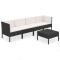 Salon de jardin 5 pcs avec coussins résine tressée noir