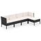 Salon de jardin 5 pcs avec coussins résine tressée noir