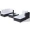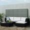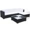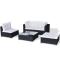 Salon de jardin 5 pcs avec coussins résine tressée noirCet ensemble de canapé en rotin combine le style et la fonctionnalité et va devenir le point central de votre jardin ou patio. Le mobilier entier est conçu pour être utilisé à l'extérieur toute l'année. Grâce à la résine tressée résistante aux intempéries et à l'eau, ce mobilier est facile à nettoyer, résistant à l'usure et adapté à un usage quotidien. L'ensemble de sièges dispose d'un cadre en acier enduit de poudre, qui est extrêmement durable. Le mobilier est également léger et modulable, ce qui le rend entièrement flexible et facile à déplacer pour s'adapter à n'importe quel environnement. Les coussins épais et amovibles sont extrêmement confortables. La livraison comprend 2 canapés d'angle, 1 canapé central, 1 repose-pied, 1 table à thé, 4 coussins de siège et 5 coussins de dossier.