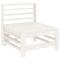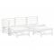 Salon de jardin 5 pcs blanc bois massif de pinCe salon de jardin en bois, qui se démarque par son design à lattes, sera un excellent supplément à votre jardin, patio ou terrasse pour profiter d'un moment agréable avec votre famille ou vos amis. Bois de pin massif : le bois de pin massif est un matériau naturel magnifique. Le bois de pin a un grain droit et les noeuds donnent au matériau son aspect caractéristique et rustique.Expérience d'assise confortable : le dossier ajoute un confort d'assise supplémentaire à l'ensemble de salon.Design modulaire : le canapé est flexible et facile à déplacer. Vous pouvez le combiner avec d'autres segments modulaires de la boutique en ligne pour créer vos propres configurations de salon de jardin ! Bon à savoir :Les coussins ne sont pas inclus.Pour que vos meubles d'extérieur restent beaux, nous vous recommandons de les protéger avec une housse imperméable. Maximum 110 kg par siège.