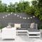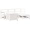 Salon de jardin 5 pcs blanc bois massif de pinCet ensemble de salon de jardin en bois avec un design à lattes sera un excellent complément à votre jardin, patio ou terrasse pour profiter d'un moment agréable avec votre famille ou vos amis. Matériau robuste et durable : le bois de pin massif est connu pour sa résistance et sa durabilité. Ses grains droits et ses noeuds distinctifs contribuent à son charme rustique. Bien ventilé et prévention de l'accumulation d'eau : la conception à lattes favorise une circulation optimale de l'air et empêche efficacement l'accumulation d'eau, assurant ainsi une assise sèche et confortable. Utilisation polyvalente : le repose-pied de jardin peut non seulement être utilisé pour s'asseoir ou se détendre, mais il peut également être utilisé comme table basse pour contenir vos boissons, votre nourriture et d'autres décorations. Table pratique : la table de jardin vous offre un endroit pratique pour atteindre facilement vos essentiels. Conception modulaire : cet ensemble de meubles d'extérieur a une conception modulaire, ce qui le rend complètement flexible et facile à déplacer, afin que vous puissiez créer un agencement de meubles d'extérieur personnalisé. Bon à savoir :Pour que vos meubles d'extérieur restent beaux, nous vous recommandons de les protéger avec une housse imperméable. Maximum 110 kg par siège.