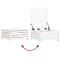 Salon de jardin 5 pcs blanc bois massif de pinCet ensemble de salon de jardin en bois avec un design à lattes sera un excellent complément à votre jardin, patio ou terrasse pour profiter d'un moment agréable avec votre famille ou vos amis. Matériau robuste et durable : le bois de pin massif est connu pour sa résistance et sa durabilité. Ses grains droits et ses noeuds distinctifs contribuent à son charme rustique. Bien ventilé et prévention de l'accumulation d'eau : la conception à lattes favorise une circulation optimale de l'air et empêche efficacement l'accumulation d'eau, assurant ainsi une assise sèche et confortable. Utilisation polyvalente : le repose-pied de jardin peut non seulement être utilisé pour s'asseoir ou se détendre, mais il peut également être utilisé comme table basse pour contenir vos boissons, votre nourriture et d'autres décorations. Conception modulaire : cet ensemble de meubles d'extérieur a une conception modulaire, ce qui le rend complètement flexible et facile à déplacer, afin que vous puissiez créer un agencement de meubles d'extérieur personnalisé. Bon à savoir :Pour que vos meubles d'extérieur restent beaux, nous vous recommandons de les protéger avec une housse imperméable. Maximum 110 kg par siège.
