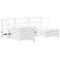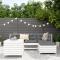 Salon de jardin 5 pcs blanc bois massif de pinCet ensemble de salon de jardin en bois avec un design à lattes sera un excellent complément à votre jardin, patio ou terrasse pour profiter d'un moment agréable avec votre famille ou vos amis. Matériau robuste et durable : le bois de pin massif est connu pour sa résistance et sa durabilité. Ses grains droits et ses noeuds distinctifs contribuent à son charme rustique. Bien ventilé et prévention de l'accumulation d'eau : la conception à lattes favorise une circulation optimale de l'air et empêche efficacement l'accumulation d'eau, assurant ainsi une assise sèche et confortable. Utilisation polyvalente : le repose-pied de jardin peut non seulement être utilisé pour s'asseoir ou se détendre, mais il peut également être utilisé comme table basse pour contenir vos boissons, votre nourriture et d'autres décorations. Table pratique : la table de jardin vous offre un endroit pratique pour atteindre facilement vos essentiels. Conception modulaire : cet ensemble de meubles d'extérieur a une conception modulaire, ce qui le rend complètement flexible et facile à déplacer, afin que vous puissiez créer un agencement de meubles d'extérieur personnalisé. Bon à savoir : Pour que vos meubles d'extérieur restent beaux, nous vous recommandons de les protéger avec une housse imperméable. Maximum 110 kg par siège.