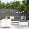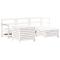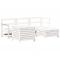 Salon de jardin 5 pcs blanc bois massif de pinCet ensemble de salon de jardin en bois avec un design à lattes sera un excellent complément à votre jardin, patio ou terrasse pour profiter d'un moment agréable avec votre famille ou vos amis. Matériau robuste et durable : le bois de pin massif est connu pour sa résistance et sa durabilité. Ses grains droits et ses noeuds distinctifs contribuent à son charme rustique. Bien ventilé et prévention de l'accumulation d'eau : la conception à lattes favorise une circulation optimale de l'air et empêche efficacement l'accumulation d'eau, assurant ainsi une assise sèche et confortable. Utilisation polyvalente : le repose-pied de jardin peut non seulement être utilisé pour s'asseoir ou se détendre, mais il peut également être utilisé comme table basse pour contenir vos boissons, votre nourriture et d'autres décorations. Table pratique : la table de jardin vous offre un endroit pratique pour atteindre facilement vos essentiels. Conception modulaire : cet ensemble de meubles d'extérieur a une conception modulaire, ce qui le rend complètement flexible et facile à déplacer, afin que vous puissiez créer un agencement de meubles d'extérieur personnalisé. Bon à savoir : Pour que vos meubles d'extérieur restent beaux, nous vous recommandons de les protéger avec une housse imperméable. Maximum 110 kg par siège.