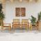Salon de jardin 5 pcs bois d'acacia solideCet ensemble de salon de jardin en bois a un design élégant et constitue un excellent choix pour vous détendre et profiter du jardin ou du patio. Bois d'acacia massif : l'ensemble de salon d'extérieur est fabriqué en bois d'acacia massif pour plus de robustesse et de stabilité. Le bois d'acacia solide est un beau matériau naturel. Le bois d'acacia a de beaux grains de bois qui rendent chaque meuble unique et légèrement différent les uns des autres.Expérience d'assise confortable : doté d'accoudoirs et d'un dossier, le salon de jardin vous offre un confort optimal.Dessus stable et facile à nettoyer : cette table de jardin a un dessus en bois d'acacia robuste, durable et facile à nettoyer avec un chiffon humide.Nombreuses applications : le siège de jardin est parfait pour tout porche avant, patio, arrière-cour, pelouse, jardin, etc. Bon à savoir :Pour que vos meubles d'extérieur restent beaux, nous vous recommandons de les protéger avec une housse imperméable. Maximum 110 kg par siège.
