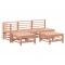 Salon de jardin 5 pcs bois massif douglasCe salon de jardin en bois, qui se démarque par son design à lattes, sera un excellent supplément à votre jardin, patio ou terrasse pour profiter d'un moment agréable avec votre famille ou vos amis. Bois de douglas massif : le bois de douglas massif est un bois très durable qui est parfait pour l'extérieur. Le bois de douglas est également solide et nécessite moins d'entretien même sous l'influence des intempéries.Expérience d'assise confortable : le dossier ajoute un confort d'assise supplémentaire à l'ensemble de salon.Design modulaire : le canapé est flexible et facile à déplacer. Vous pouvez le combiner avec d'autres segments modulaires de la boutique en ligne pour créer vos propres configurations de salon de jardin ! Bon à savoir :Les coussins ne sont pas inclus.Pour que vos meubles d'extérieur restent beaux, nous vous recommandons de les protéger avec une housse imperméable. Maximum 110 kg par siège.