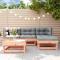 Salon de jardin 5 pcs bois massif douglasCe salon de jardin en bois, qui se démarque par son design à lattes, sera un excellent supplément à votre jardin, patio ou terrasse pour profiter d'un moment agréable avec votre famille ou vos amis. Bois de douglas massif : le bois de douglas massif est un bois très durable qui fonctionne bien à l'extérieur. Le bois de douglas est également suffisamment solide pour être travaillé avec un minimum de soin, même sous l'influence des intempéries. Cadre robuste et stable : les cadres en bois rendent l'ensemble de salon robuste et stable pour une utilisation quotidienne à l'extérieur. Design modulaire : le canapé est flexible et facile à déplacer. Vous pouvez le combiner avec d'autres segments modulaires de la boutique en ligne pour créer vos propres configurations de salon de jardin ! Bon à savoir : Pour que vos meubles d'extérieur restent beaux, nous vous recommandons de les protéger avec une housse imperméable. Les coussins ne sont pas inclus dans la livraison. Maximum 110 kg par siège.