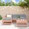 Salon de jardin 5 pcs bois massif douglasCe salon de jardin en bois, qui se démarque par son design à lattes, sera un excellent supplément à votre jardin, patio ou terrasse pour profiter d'un moment agréable avec votre famille ou vos amis. Bois de douglas massif : le bois de douglas massif est un bois très durable qui fonctionne bien à l'extérieur. Le bois de douglas est également suffisamment solide pour être travaillé avec un minimum de soin, même sous l'influence des intempéries. Cadre robuste et stable : les cadres en bois rendent l'ensemble de salon robuste et stable pour une utilisation quotidienne à l'extérieur. Design modulaire : le canapé est flexible et facile à déplacer. Vous pouvez le combiner avec d'autres segments modulaires de la boutique en ligne pour créer vos propres configurations de salon de jardin ! Bon à savoir : Pour que vos meubles d'extérieur restent beaux, nous vous recommandons de les protéger avec une housse imperméable. Les coussins ne sont pas inclus dans la livraison. Maximum 110 kg par siège.