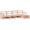 Salon de jardin 5 pcs bois massif sapin de douglasCet ensemble de salon de jardin en bois avec un design à lattes sera un excellent complément à votre jardin, patio ou terrasse pour profiter d'un moment agréable avec votre famille ou vos amis. Matériau robuste et durable : le bois de sapin de douglas est connu pour sa résistance et sa durabilité. Sa couleur brun rougeâtre riche et ses grains uniques dégagent une ambiance chaleureuse et naturelle. Sa stabilité et sa résistance aux intempéries sont idéales pour la fabrication de meubles d'intérieur et d'extérieur. Bien ventilé et prévention de l'accumulation d'eau : la conception à lattes favorise une circulation optimale de l'air et empêche efficacement l'accumulation d'eau, assurant ainsi une assise sèche et confortable. Utilisation polyvalente : le repose-pied de jardin peut non seulement être utilisé pour s'asseoir ou se détendre, mais il peut également être utilisé comme table basse pour contenir vos boissons, votre nourriture et d'autres décorations. Conception modulaire : cet ensemble de meubles d'extérieur a une conception modulaire, ce qui le rend complètement flexible et facile à déplacer, afin que vous puissiez créer un agencement de meubles d'extérieur personnalisé. Bon à savoir :Pour que vos meubles d'extérieur restent beaux, nous vous recommandons de les protéger avec une housse imperméable. Maximum 110 kg par siège.