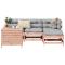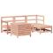 Salon de jardin 5 pcs bois massif sapin de douglasCet ensemble de salon de jardin en bois avec un design à lattes sera un excellent complément à votre jardin, patio ou terrasse pour profiter d'un moment agréable avec votre famille ou vos amis. Matériau robuste et durable : le bois de sapin de douglas est connu pour sa résistance et sa durabilité. Sa couleur brun rougeâtre riche et ses grains uniques dégagent une ambiance chaleureuse et naturelle. Sa stabilité et sa résistance aux intempéries sont idéales pour la fabrication de meubles d'intérieur et d'extérieur. Bien ventilé et prévention de l'accumulation d'eau : la conception à lattes favorise une circulation optimale de l'air et empêche efficacement l'accumulation d'eau, assurant ainsi une assise sèche et confortable. Utilisation polyvalente : le repose-pied de jardin peut non seulement être utilisé pour s'asseoir ou se détendre, mais il peut également être utilisé comme table basse pour contenir vos boissons, votre nourriture et d'autres décorations. Table pratique : la table de jardin vous offre un endroit pratique pour atteindre facilement vos essentiels. Conception modulaire : cet ensemble de meubles d'extérieur a une conception modulaire, ce qui le rend complètement flexible et facile à déplacer, afin que vous puissiez créer un agencement de meubles d'extérieur personnalisé. Bon à savoir : Pour que vos meubles d'extérieur restent beaux, nous vous recommandons de les protéger avec une housse imperméable. Maximum 110 kg par siège.