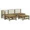 Salon de jardin 5 pcs bois de pin imprégnéCe salon de jardin en bois, qui se démarque par son design à lattes, sera un excellent supplément à votre jardin, patio ou terrasse pour profiter d'un moment agréable avec votre famille ou vos amis. Bois imprégné : le bois de pin massif est un matériau naturel magnifique. Le bois de pin a un grain droit et les noeuds lui confèrent un aspect rustique caractéristique. L'imprégnation est un processus de conservation réalisé à l'aide d'autoclaves. Le traitement sous pression augmente la résistance à la pourriture et aux intempéries.Expérience d'assise confortable : le dossier ajoute un confort d'assise supplémentaire à l'ensemble de salon.Design modulaire : le canapé est flexible et facile à déplacer. Vous pouvez le combiner avec d'autres segments modulaires de la boutique en ligne pour créer vos propres configurations de salon de jardin ! Bon à savoir :Les coussins ne sont pas inclus.Pour que vos meubles d'extérieur restent beaux, nous vous recommandons de les protéger avec une housse imperméable. Maximum 110 kg par siège.