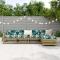 Salon de jardin 5 pcs bois de pin imprégnéCet ensemble de salon de jardin en bois avec un design à lattes sera un excellent complément à votre jardin, patio ou terrasse pour profiter d'un moment agréable avec votre famille ou vos amis. Matériau robuste et durable : le bois de pin massif est connu pour sa résistance et sa durabilité. Ses grains droits et ses noeuds distinctifs contribuent à son charme rustique. Il a été imprégné avec une solution de conservation et a subi un traitement en autoclave, ce qui renforce sa résistance à la pourriture et aux intempéries. Bien ventilé et prévention de l'accumulation d'eau : la conception à lattes favorise une circulation optimale de l'air et empêche efficacement l'accumulation d'eau, assurant ainsi une assise sèche et confortable. Utilisation polyvalente : le repose-pied de jardin peut non seulement être utilisé pour s'asseoir ou se détendre, mais il peut également être utilisé comme table basse pour contenir vos boissons, votre nourriture et d'autres décorations. Conception modulaire : cet ensemble de meubles d'extérieur a une conception modulaire, ce qui le rend complètement flexible et facile à déplacer, afin que vous puissiez créer un agencement de meubles d'extérieur personnalisé. Bon à savoir :Pour que vos meubles d'extérieur restent beaux, nous vous recommandons de les protéger avec une housse imperméable. Maximum 110 kg par siège.