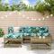 Salon de jardin 5 pcs bois de pin imprégnéCe salon de jardin en bois, qui se démarque par son design à lattes, sera un excellent supplément à votre jardin, patio ou terrasse pour profiter d'un moment agréable avec votre famille ou vos amis. Bois imprégné : le bois de pin massif est un matériau naturel magnifique. Le bois de pin a un grain droit et les noeuds lui confèrent un aspect rustique caractéristique. L'imprégnation est un processus de conservation réalisé à l'aide d'autoclaves. Le traitement sous pression augmente la résistance à la pourriture et aux intempéries.Cadre robuste et stable : les cadres en bois rendent l'ensemble de salon robuste et stable pour une utilisation quotidienne à l'extérieur.Design modulaire : le canapé est flexible et facile à déplacer. Vous pouvez le combiner avec d'autres segments modulaires de la boutique en ligne pour créer vos propres configurations de salon de jardin ! Bon à savoir :Pour que vos meubles d'extérieur restent beaux, nous vous recommandons de les protéger avec une housse imperméable.Les coussins ne sont pas inclus dans la livraison. Maximum 110 kg par siège.