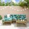 Salon de jardin 5 pcs bois de pin imprégnéCe salon de jardin en bois, qui se démarque par son design à lattes, sera un excellent supplément à votre jardin, patio ou terrasse pour profiter d'un moment agréable avec votre famille ou vos amis. Bois imprégné : le bois de pin massif est un matériau naturel magnifique. Le bois de pin a un grain droit et les noeuds lui confèrent un aspect rustique caractéristique. L'imprégnation est un processus de conservation réalisé à l'aide d'autoclaves. Le traitement sous pression augmente la résistance à la pourriture et aux intempéries.Cadre robuste et stable : les cadres en bois rendent l'ensemble de salon robuste et stable pour une utilisation quotidienne à l'extérieur.Design modulaire : le canapé est flexible et facile à déplacer. Vous pouvez le combiner avec d'autres segments modulaires de la boutique en ligne pour créer vos propres configurations de salon de jardin ! Bon à savoir :Pour que vos meubles d'extérieur restent beaux, nous vous recommandons de les protéger avec une housse imperméable.Les coussins ne sont pas inclus dans la livraison. Maximum 110 kg par siège.