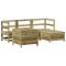 Salon de jardin 5 pcs bois de pin imprégnéCet ensemble de salon de jardin en bois avec un design à lattes sera un excellent complément à votre jardin, patio ou terrasse pour profiter d'un moment agréable avec votre famille ou vos amis. Matériau robuste et durable : le bois de pin massif est connu pour sa résistance et sa durabilité. Ses grains droits et ses noeuds distinctifs contribuent à son charme rustique. Il a été imprégné avec une solution de conservation et a subi un traitement en autoclave, ce qui renforce sa résistance à la pourriture et aux intempéries. Bien ventilé et prévention de l'accumulation d'eau : la conception à lattes favorise une circulation optimale de l'air et empêche efficacement l'accumulation d'eau, assurant ainsi une assise sèche et confortable. Utilisation polyvalente : le repose-pied de jardin peut non seulement être utilisé pour s'asseoir ou se détendre, mais il peut également être utilisé comme table basse pour contenir vos boissons, votre nourriture et d'autres décorations. Table pratique : la table de jardin vous offre un endroit pratique pour atteindre facilement vos essentiels. Conception modulaire : cet ensemble de meubles d'extérieur a une conception modulaire, ce qui le rend complètement flexible et facile à déplacer, afin que vous puissiez créer un agencement de meubles d'extérieur personnalisé. Bon à savoir : Pour que vos meubles d'extérieur restent beaux, nous vous recommandons de les protéger avec une housse imperméable. Maximum 110 kg par siège.