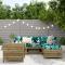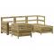 Salon de jardin 5 pcs bois de pin imprégnéCet ensemble de salon de jardin en bois avec un design à lattes sera un excellent complément à votre jardin, patio ou terrasse pour profiter d'un moment agréable avec votre famille ou vos amis. Matériau robuste et durable : le bois de pin massif est connu pour sa résistance et sa durabilité. Ses grains droits et ses noeuds distinctifs contribuent à son charme rustique. Il a été imprégné avec une solution de conservation et a subi un traitement en autoclave, ce qui renforce sa résistance à la pourriture et aux intempéries. Bien ventilé et prévention de l'accumulation d'eau : la conception à lattes favorise une circulation optimale de l'air et empêche efficacement l'accumulation d'eau, assurant ainsi une assise sèche et confortable. Utilisation polyvalente : le repose-pied de jardin peut non seulement être utilisé pour s'asseoir ou se détendre, mais il peut également être utilisé comme table basse pour contenir vos boissons, votre nourriture et d'autres décorations. Table pratique : la table de jardin vous offre un endroit pratique pour atteindre facilement vos essentiels. De plus, le canapé avec accoudoirs est doté d'une table d'appoint pliable avec des ressorts à gaz sur l'accoudoir pour garder vos objets à portée de main. Conception modulaire : cet ensemble de meubles d'extérieur a une conception modulaire, ce qui le rend complètement flexible et facile à déplacer, afin que vous puissiez créer un agencement de meubles d'extérieur personnalisé. Bon à savoir : Pour que vos meubles d'extérieur restent beaux, nous vous recommandons de les protéger avec une housse imperméable. Maximum 110 kg par siège.