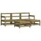 Salon de jardin 5 pcs bois de pin imprégnéCe salon de jardin en bois, qui se démarque par son design à lattes, sera un excellent supplément à votre jardin, patio ou terrasse pour profiter d'un moment agréable avec votre famille ou vos amis. Bois imprégné : le bois de pin massif est un matériau naturel magnifique. Le bois de pin a un grain droit et les noeuds lui confèrent un aspect rustique caractéristique. L'imprégnation est un processus de conservation réalisé à l'aide d'autoclaves. Le traitement sous pression augmente la résistance à la pourriture et aux intempéries. Cadre robuste et stable : les cadres en bois rendent l'ensemble de salon robuste et stable pour une utilisation quotidienne à l'extérieur. Design modulaire : le canapé est flexible et facile à déplacer. Vous pouvez le combiner avec d'autres segments modulaires de la boutique en ligne pour créer vos propres configurations de salon de jardin ! Bon à savoir : Pour que vos meubles d'extérieur restent beaux, nous vous recommandons de les protéger avec une housse imperméable. Les coussins ne sont pas inclus dans la livraison. Maximum 110 kg par siège.