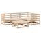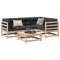 Salon de jardin 5 pcs bois de pin massifCet ensemble de canapés de jardin est le complément parfait de votre arrière-cour, terrasse ou patio, offrant un espace confortable et accueillant pour discuter avec la famille et les amis ou simplement se détendre et profiter de l'extérieur. Matériau robuste et durable : le bois de pin massif est connu pour sa résistance et sa durabilité. Ses grains droits et ses noeuds distinctifs contribuent à son charme rustique.Bien ventilé et prévention de l'accumulation d'eau : la conception à lattes favorise une circulation optimale de l'air et empêche efficacement l'accumulation d'eau, assurant ainsi une assise sèche et confortable.Conception modulaire : cet ensemble de meubles d'extérieur a une conception modulaire, ce qui le rend complètement flexible et facile à déplacer, afin que vous puissiez créer un agencement de meubles d'extérieur personnalisé. Bon à savoir :Pour que vos meubles d'extérieur restent beaux, nous vous recommandons de les protéger avec une housse imperméable. Maximum 110 kg par siège.