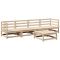 Salon de jardin 5 pcs bois de pin massifCet ensemble de canapés de jardin est le complément parfait de votre arrière-cour, terrasse ou patio, offrant un espace confortable et accueillant pour discuter avec la famille et les amis ou simplement se détendre et profiter de l'extérieur. Matériau robuste et durable : le bois de pin massif est connu pour sa résistance et sa durabilité. Ses grains droits et ses noeuds distinctifs contribuent à son charme rustique. Bien ventilé et prévention de l'accumulation d'eau : la conception à lattes favorise une circulation optimale de l'air et empêche efficacement l'accumulation d'eau, assurant ainsi une assise sèche et confortable. Conception modulaire : cet ensemble de meubles d'extérieur a une conception modulaire, ce qui le rend complètement flexible et facile à déplacer, afin que vous puissiez créer un agencement de meubles d'extérieur personnalisé. Bon à savoir :Pour que vos meubles d'extérieur restent beaux, nous vous recommandons de les protéger avec une housse imperméable. Maximum 110 kg par siège.