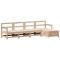 Salon de jardin 5 pcs bois de pin massifCet ensemble de salon de jardin en bois avec un design à lattes sera un excellent complément à votre jardin, patio ou terrasse pour profiter d'un moment agréable avec votre famille ou vos amis. Matériau robuste et durable : le bois de pin massif est connu pour sa résistance et sa durabilité. Ses grains droits et ses noeuds distinctifs contribuent à son charme rustique. Bien ventilé et prévention de l'accumulation d'eau : la conception à lattes favorise une circulation optimale de l'air et empêche efficacement l'accumulation d'eau, assurant ainsi une assise sèche et confortable. Utilisation polyvalente : le repose-pied de jardin peut non seulement être utilisé pour s'asseoir ou se détendre, mais il peut également être utilisé comme table basse pour contenir vos boissons, votre nourriture et d'autres décorations. Conception modulaire : cet ensemble de meubles d'extérieur a une conception modulaire, ce qui le rend complètement flexible et facile à déplacer, afin que vous puissiez créer un agencement de meubles d'extérieur personnalisé. Bon à savoir :Pour que vos meubles d'extérieur restent beaux, nous vous recommandons de les protéger avec une housse imperméable. Maximum 110 kg par siège.