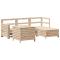 Salon de jardin 5 pcs bois de pin massifCet ensemble de salon de jardin en bois avec un design à lattes sera un excellent complément à votre jardin, patio ou terrasse pour profiter d'un moment agréable avec votre famille ou vos amis. Matériau robuste et durable : le bois de pin massif est connu pour sa résistance et sa durabilité. Ses grains droits et ses noeuds distinctifs contribuent à son charme rustique. Bien ventilé et prévention de l'accumulation d'eau : la conception à lattes favorise une circulation optimale de l'air et empêche efficacement l'accumulation d'eau, assurant ainsi une assise sèche et confortable. Utilisation polyvalente : le repose-pied de jardin peut non seulement être utilisé pour s'asseoir ou se détendre, mais il peut également être utilisé comme table basse pour contenir vos boissons, votre nourriture et d'autres décorations. Table pratique : la table de jardin vous offre un endroit pratique pour atteindre facilement vos essentiels. De plus, le canapé avec accoudoirs est doté d'une table d'appoint pliable avec des ressorts à gaz sur l'accoudoir pour garder vos objets à portée de main. Conception modulaire : cet ensemble de meubles d'extérieur a une conception modulaire, ce qui le rend complètement flexible et facile à déplacer, afin que vous puissiez créer un agencement de meubles d'extérieur personnalisé. Bon à savoir : Pour que vos meubles d'extérieur restent beaux, nous vous recommandons de les protéger avec une housse imperméable. Maximum 110 kg par siège.