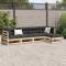 Salon de jardin 5 pcs bois de pin massifCet ensemble de canapés de jardin est le complément parfait de votre arrière-cour, terrasse ou patio, offrant un espace confortable et accueillant pour discuter avec la famille et les amis ou simplement se détendre et profiter de l'extérieur. Matériau robuste et durable : le bois de pin massif est connu pour sa résistance et sa durabilité. Ses grains droits et ses noeuds distinctifs contribuent à son charme rustique. Bien ventilé et prévention de l'accumulation d'eau : la conception à lattes favorise une circulation optimale de l'air et empêche efficacement l'accumulation d'eau, assurant ainsi une assise sèche et confortable. Conception modulaire : cet ensemble de meubles d'extérieur a une conception modulaire, ce qui le rend complètement flexible et facile à déplacer, afin que vous puissiez créer un agencement de meubles d'extérieur personnalisé. Bon à savoir : Pour que vos meubles d'extérieur restent beaux, nous vous recommandons de les protéger avec une housse imperméable. Maximum 110 kg par siège.