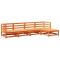 Salon de jardin 5 pcs cire marron bois de pin massifCet ensemble de canapés de jardin est le complément parfait de votre arrière-cour, terrasse ou patio, offrant un espace confortable et accueillant pour discuter avec la famille et les amis ou simplement se détendre et profiter de l'extérieur. Matériau robuste et durable : le bois de pin massif est connu pour sa résistance et sa durabilité. Ses grains droits et ses noeuds distinctifs contribuent à son charme rustique.Bien ventilé et prévention de l'accumulation d'eau : la conception à lattes favorise une circulation optimale de l'air et empêche efficacement l'accumulation d'eau, assurant ainsi une assise sèche et confortable.Conception modulaire : cet ensemble de meubles d'extérieur a une conception modulaire, ce qui le rend complètement flexible et facile à déplacer, afin que vous puissiez créer un agencement de meubles d'extérieur personnalisé. Bon à savoir :Pour que vos meubles d'extérieur restent beaux, nous vous recommandons de les protéger avec une housse imperméable. Maximum 110 kg par siège.