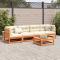 Salon de jardin 5 pcs cire marron bois de pin massifCet ensemble de canapés de jardin est le complément parfait de votre arrière-cour, terrasse ou patio, offrant un espace confortable et accueillant pour discuter avec la famille et les amis ou simplement se détendre et profiter de l'extérieur. Matériau robuste et durable : le bois de pin massif est connu pour sa résistance et sa durabilité. Ses grains droits et ses noeuds distinctifs contribuent à son charme rustique. Bien ventilé et prévention de l'accumulation d'eau : la conception à lattes favorise une circulation optimale de l'air et empêche efficacement l'accumulation d'eau, assurant ainsi une assise sèche et confortable. Conception modulaire : cet ensemble de meubles d'extérieur a une conception modulaire, ce qui le rend complètement flexible et facile à déplacer, afin que vous puissiez créer un agencement de meubles d'extérieur personnalisé. Bon à savoir :Pour que vos meubles d'extérieur restent beaux, nous vous recommandons de les protéger avec une housse imperméable. Maximum 110 kg par siège.