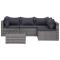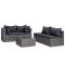 Salon de jardin 5 pcs et coussins et oreillers Résine tresséeCet ensemble canapé en résine tressée, composé de 2 canapés d'angle, de 2 canapé centrales, d'1 table basse, de 4 coussins de siège et de 6 oreillers de dossier, vous offrira un espace généreux et un style contemporain pour votre jardin ou patio. Grâce à la résine tressée résistante à l'eau, l'ensemble de canapé de terrasse est facile à nettoyer, résistant à l'usure et adapté à une utilisation quotidienne en extérieur. Cet ensemble est livré avec des coussins d'assise et des oreillers de dossier très confortables et rembourrés pour un soutien optimal. Les housses en polyester nécessitant peu d'entretien peuvent également être enlevées et lavées facilement. De plus, l'ensemble en résine tressée offre une flexibilité totale et peut être facilement déplacé pour s'adapter à toutes les décorations. Cet ensemble de canapé est facile à assembler. Remarque : nous vous recommandons de couvrir l'ensemble de meuble pendant la pluie, la neige et le gel pour une utilisation durable.
