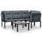 Salon de jardin 5 pcs noir et gris résine tresséeCet ensemble de salon de jardin tendance, au design élégant et contemporain, est un choix parfait pour vous détendre dans votre jardin. Matériau résistant aux intempéries : la résine tressée, également connue sous le nom de rotin poly, résiste aux intempéries et est facile à nettoyer. Elle reste belle à l'extérieur pendant une longue période. Elle offre une excellente qualité, commodité et un aspect esthétique. Cadre robuste et stable : le cadre en acier enduit de poudre de l'ensemble de salon garantit la robustesse et la stabilité.Expérience d'assise confortable : le dossier ajoute un confort d'assise supplémentaire à la chaise. De plus, les coussins bien rembourrés vous permettent de vous asseoir confortablement.Conception modulaire : le salon d'extérieur est flexible et facile à déplacer, vous pouvez donc le combiner avec d'autres segments modulaires dans la boutique en ligne pour créer vos propres configurations d'ensemble de salon de jardin !Table pratique : le dessus robuste de la table basse de jardin est parfait pour placer des repas, des boissons et d'autres objets décoratifs. Bon à savoir :Pour faciliter au maximum le montage, chaque produit est livré avec des instructions.Remarque :Pour que vos meubles d'extérieur restent beaux, nous vous recommandons de les protéger avec une housse imperméable. Maximum 110 kg par siège. Soyez conscient du risque de feu ouvert et d'autres sources de forte chaleur à proximité de l'appareil.