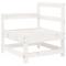 Salon de jardin 6 pcs Blanc Bois de pin massifCe salon de jardin en bois, qui se démarque par son design à lattes, sera un excellent supplément à votre jardin, patio ou terrasse pour profiter d'un moment agréable avec votre famille ou vos amis. Bois de pin massif : le bois de pin massif est un matériau naturel magnifique. Le bois de pin a un grain droit et les noeuds donnent au matériau son aspect caractéristique et rustique.Expérience d'assise confortable : le dossier ajoute un confort d'assise supplémentaire au canapé d'extérieur.Design modulaire : le canapé est flexible et facile à déplacer. Vous pouvez le combiner avec d'autres segments modulaires de la boutique en ligne pour créer vos propres configurations de salon de jardin ! Bon à savoir :Pour que vos meubles d'extérieur restent beaux, nous vous recommandons de les protéger avec une housse imperméable.Les coussins ne sont pas inclus dans la livraison. Maximum 110 kg par siège.