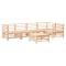 Salon de jardin 6 pcs Bois de pin massifCe salon de jardin en bois, qui se démarque par son design à lattes, sera un excellent supplément à votre jardin, patio ou terrasse pour profiter d'un moment agréable avec votre famille ou vos amis. Bois de pin massif : le bois de pin massif est un matériau naturel magnifique. Le bois de pin a un grain droit et les noeuds donnent au matériau son aspect caractéristique et rustique.Cadre robuste et stable : les cadres en bois rendent l'ensemble de salon robuste et stable pour une utilisation quotidienne à l'extérieur.Design modulaire : le canapé est flexible et facile à déplacer. Vous pouvez le combiner avec d'autres segments modulaires de la boutique en ligne pour créer vos propres configurations de salon de jardin ! Bon à savoir :Pour que vos meubles d'extérieur restent beaux, nous vous recommandons de les protéger avec une housse imperméable.Les coussins ne sont pas inclus dans la livraison. Maximum 110 kg par siège.
